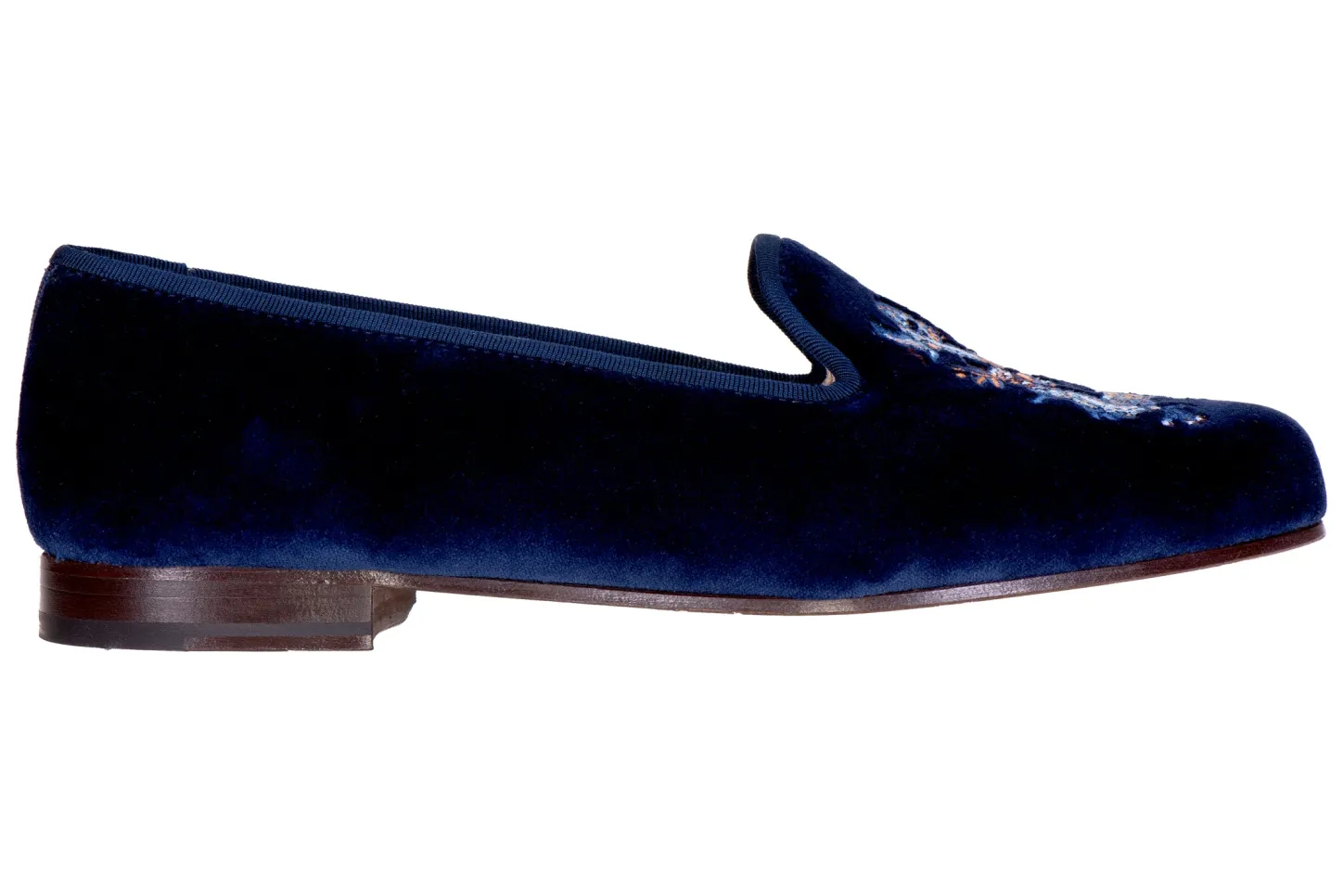 In honor of our long standing partnership with ScalamandrĂ© , we would love to introduce the Year of the Dragon collaboration. Utilizing ScalamandrĂ©’s brocade jacquard fabric created in partnership with The Met museum, we have created multiple styles to accompany your wardrobe. The inspiration for the brocade was from a woven scroll cover produced to accompany the Qianlong emperor’s calligraphy, the fabric celebrates the visual culture of the Qing dynasty, the last in China’s imperial history. In Chinese culture, the dragon represents good luck, strength, and health. Our Dragon Indigo Slipper features a rich cotton-silk navy velvet with a harmonizing navy grosgrain. Meticulously Hand-crafted in Spain. Leather lined to provide additional support and comfort. The stacked wooden heel is 3/4″ in height. Leather soled. True to American sizing.